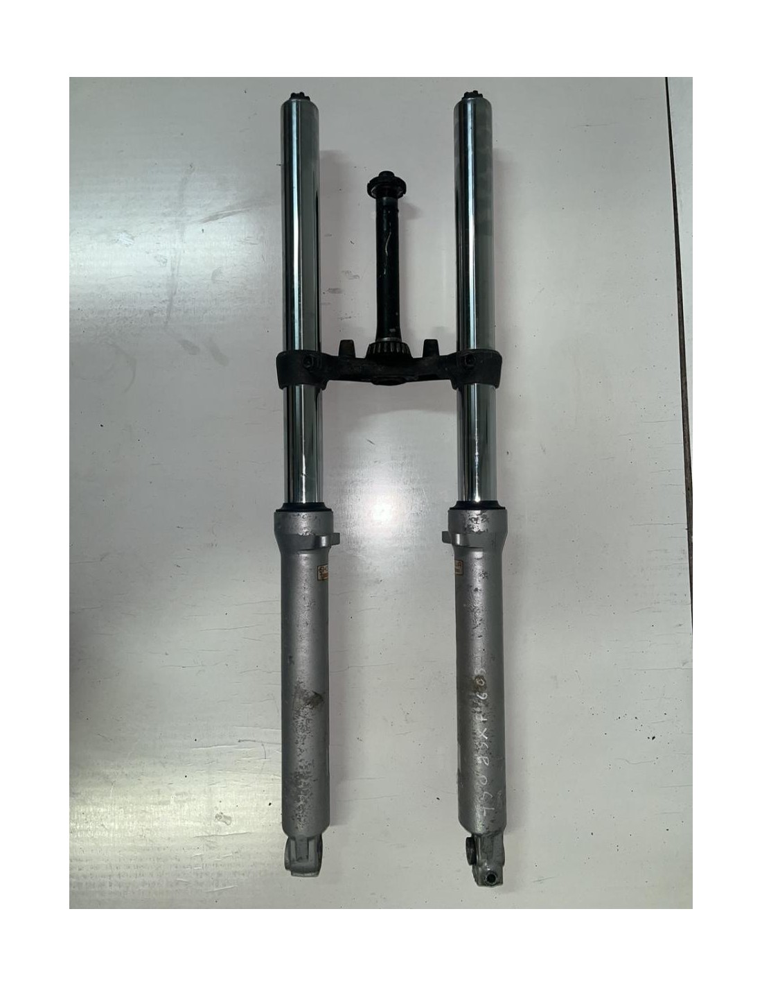 Vendu avec tube de fourche gauche et droit en bon état, sans té de fourche supérieur